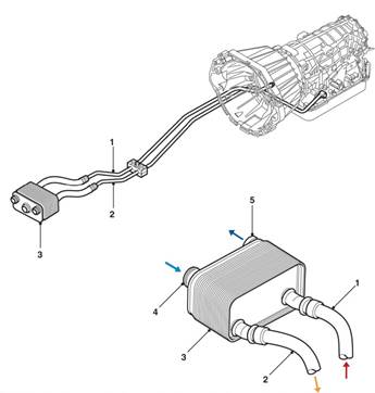 Η συνεχής υπερθέρμανση του λαδιού του κιβωτίου και το κάψιμο των δίσκων, μπορεί να οφείλετε στην βλάβη της θερμοστατικής βαλβίδας που ανοίγει το κύκλωμα του ψυκτικού υγρού (νερού) του κινητήρα που ψύχει και το λάδι του κιβωτίου μέσω του μικρού ψυγείου του κιβωτίου όπως φαίνεται στην εικόνα . Η θερμοστατική βαλβίδα δεν είναι επισκευάσιμη και έτσι η αλλαγή του ψυγείου είναι επιβεβλημένη . Ακόμα και σε καινούργιο ψυγείο η βαλβίδα μπορεί να μην λειτουργεί σωστά. Αυτού του τύπου τα ψυγεία ΔΕΝ είναι δυνατόν να καθαριστούν.
