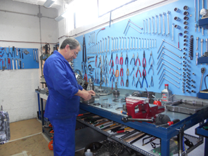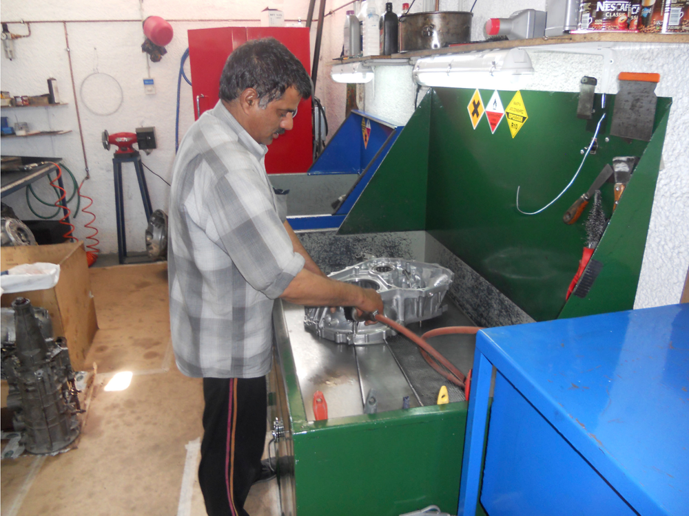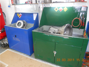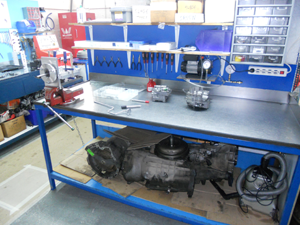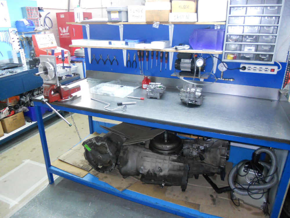 The valve body inspection and assembly bench, with Sol-X 2000 solenoid tester and cleaning machine. |